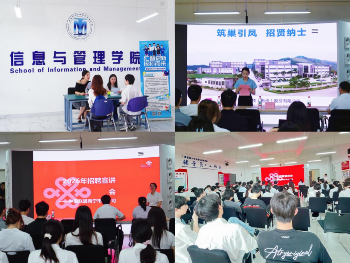 为深入贯彻落实教育部“春季促就业攻坚行动”工作要求,紧抓春季就业工作攻坚黄金期,4月14日,主播视频 在武鸣校区A8-1-101顺利开展“暖心护航,职启新程”—2026届毕业生春季专场招聘会。学院院长何慧敏、党委副书记蒋鹏、学工办主任何锡嘉、信息系主任张茂胜、学院辅导员及60余名学生参加本次招聘会。